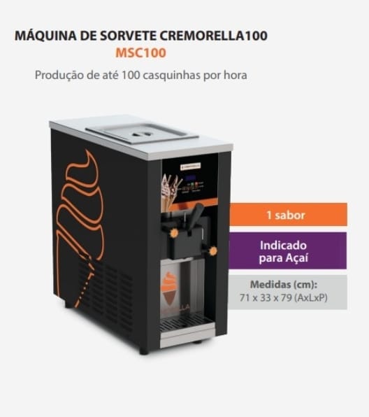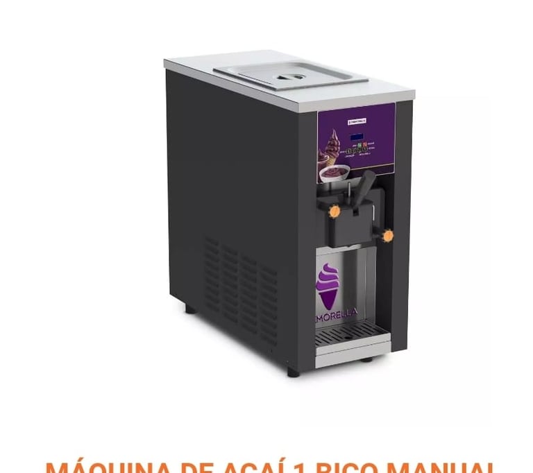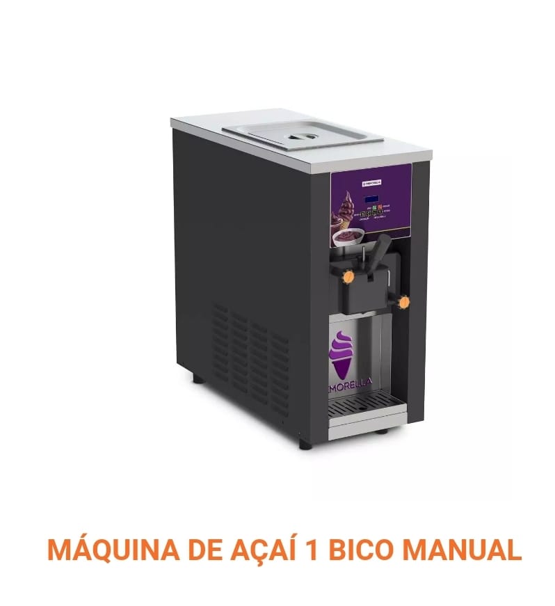 Máquina manual de 1 bico para 100 cones/hora. 200v monofásica, compressor inverter. Ideal para açaí.