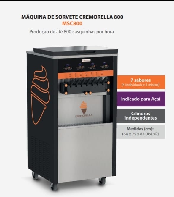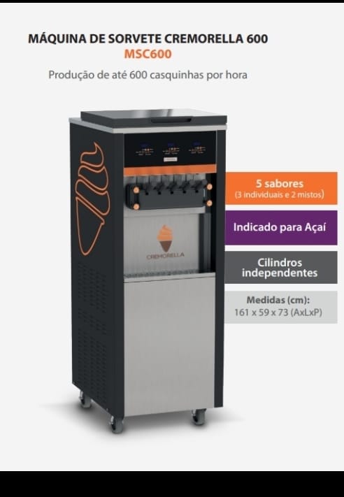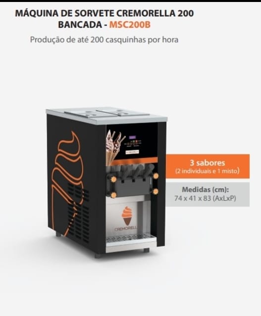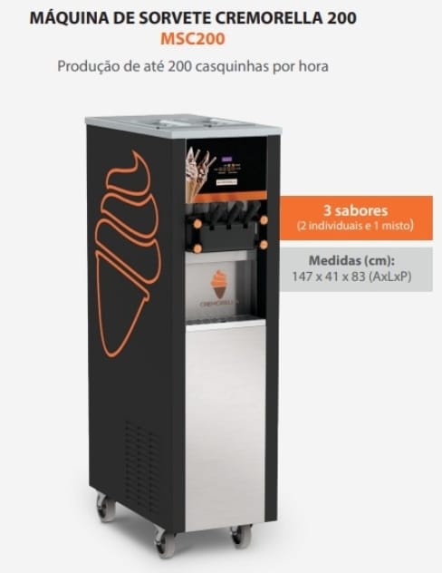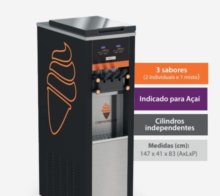 Máquina de 3 bicos, de coluna, compressores inverter, 220v monofásica. 200 casquinhas/hora.